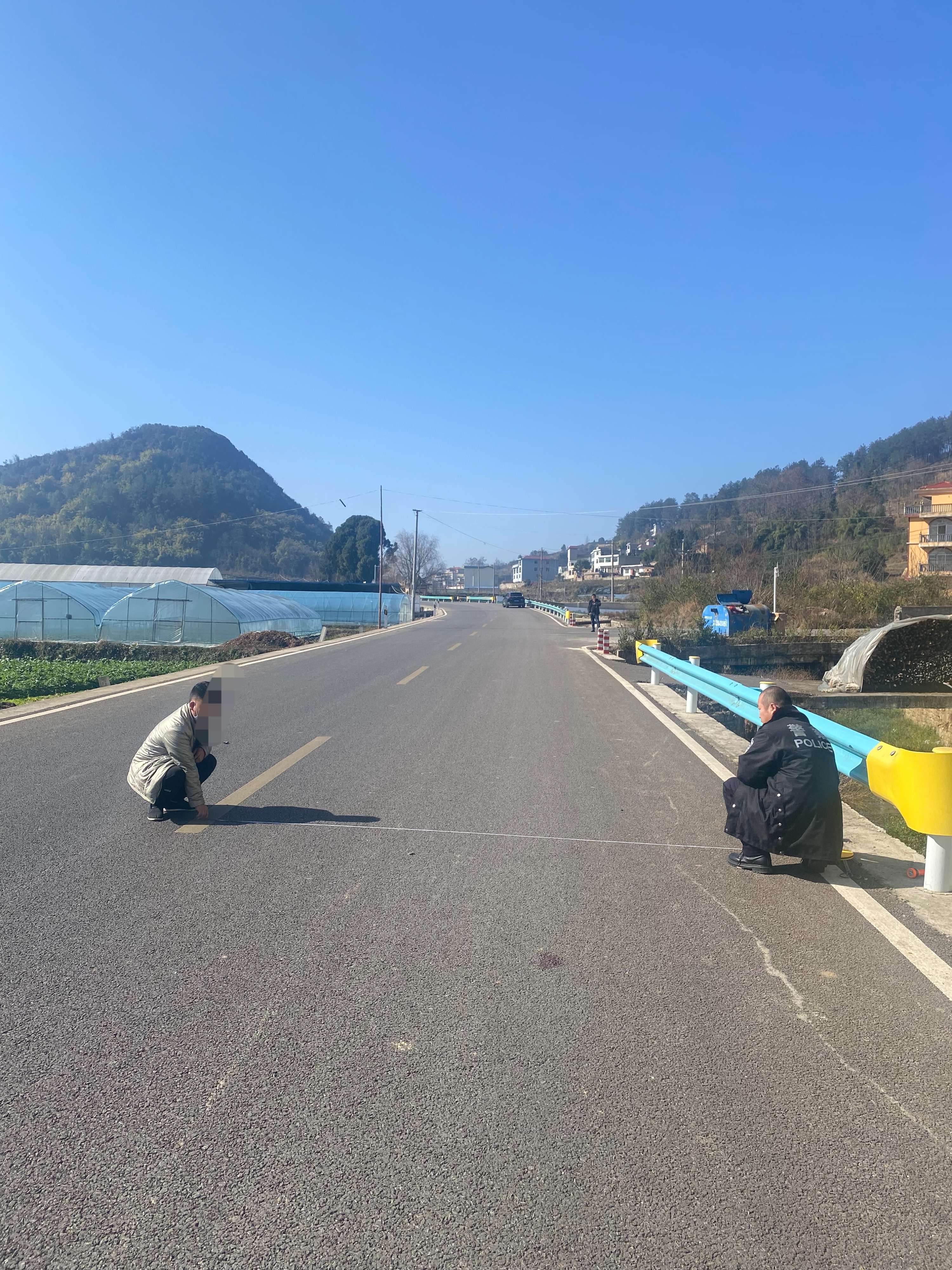 事发当日拂晓,天还未亮。贵阳交警乌当区分局事故中队民警接到分局指挥中心转来警情称,在羊下线(羊昌—下坝)132县道喇坪村路段发生一起交通事故,现场有人员受伤,因天黑路远,驾驶人何某已驾车将伤者宋某送至医院进行救治。接到报警后,民警第一时间赶到医院对驾驶人何某进行事故初步了解并对其进行呼气时酒精检测,排除其酒后驾车的嫌疑,而后了解了伤者宋某的病情,知晓其现在身体受伤,无生命危险后又返回事发地进行初步勘验。