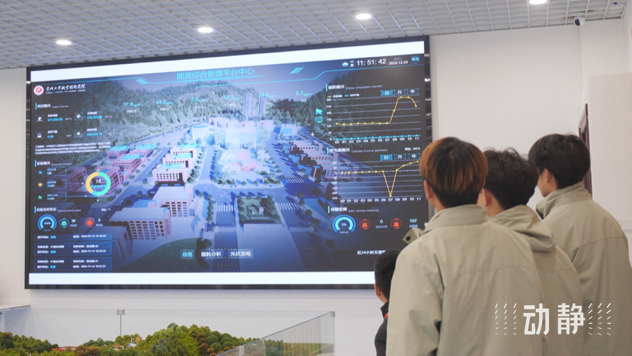 在贵州工业职业技术学院,6栋教学楼的屋顶都铺上了光伏板、充电设备、管理系统,打造源网荷储一体化工程。