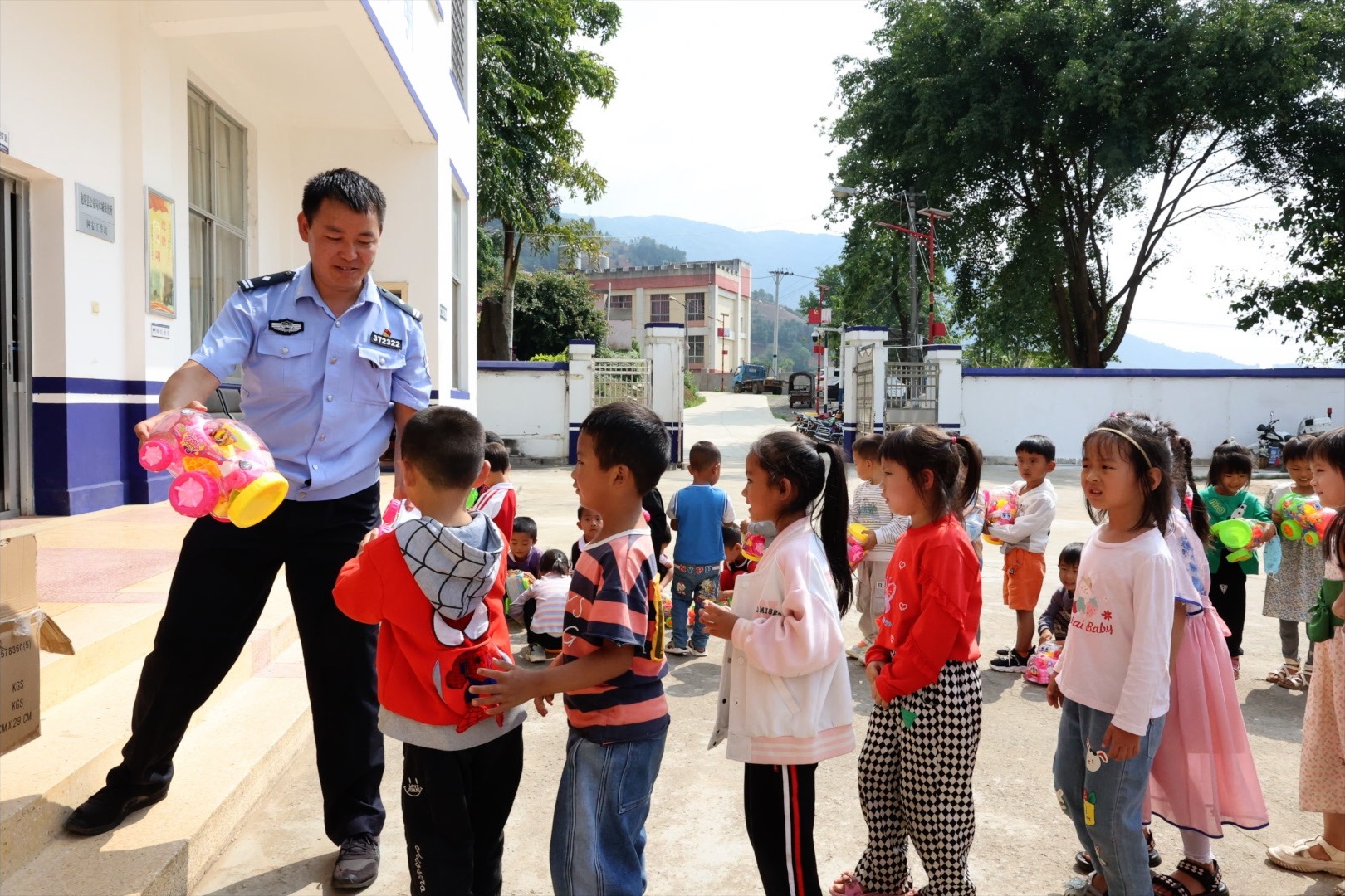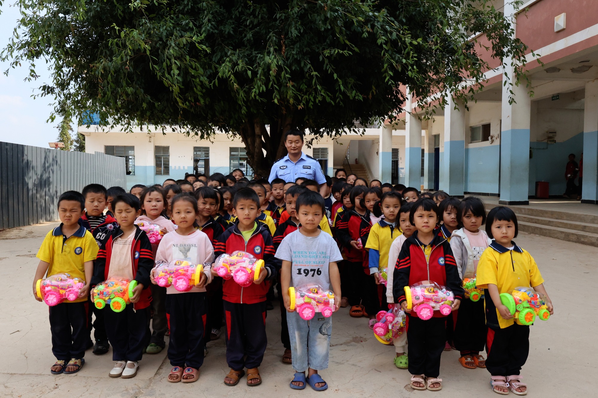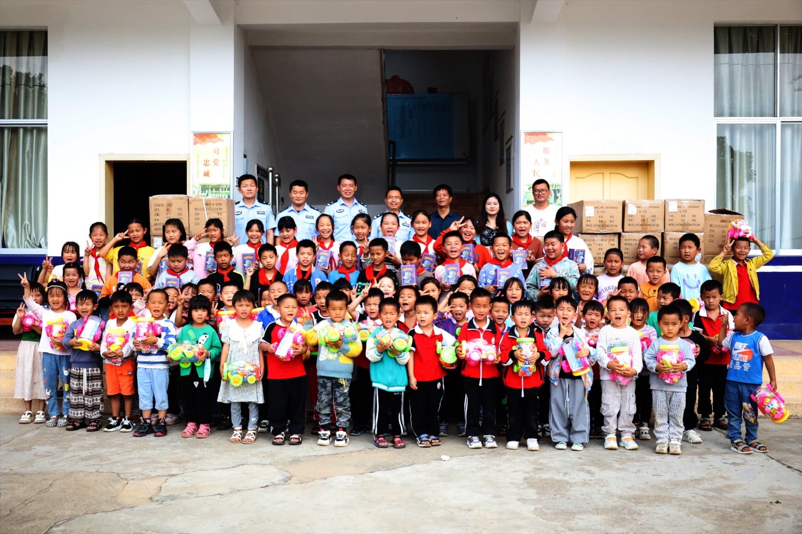 5月29日,云南木城边境派出所的移民管理警察再次收到了神秘网友“四毛”邮寄来的1700套益智玩具,收到玩具后民警们第一时间联合辖区学校的老师进行了发放。