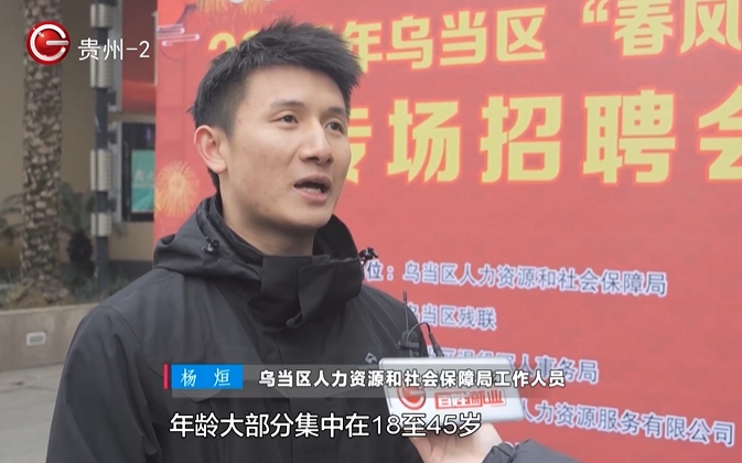 乌当区人力资源和社会保障局工作人员杨烜:我们招聘会主要是面向有求职需求的,年龄大约在18到45岁,小部分45岁至55岁之间的群众。因为我们这次活动叫春风行动,主要是在春天来临之际,大家有招工需求的时候,给大家提供一些求职岗位,促进就业。