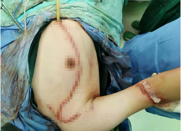 在省人民医院麻醉团队和手术室护士的密切配合保驾护航下,手术历时4小时顺利完成,患者生命体征平稳,剥离胸大肌及附动静脉神经完整,转位重建后再造的肱二头肌血运正常,术末电刺激肌肉收缩功能正常。目前,男子恢复良好,康复出院。