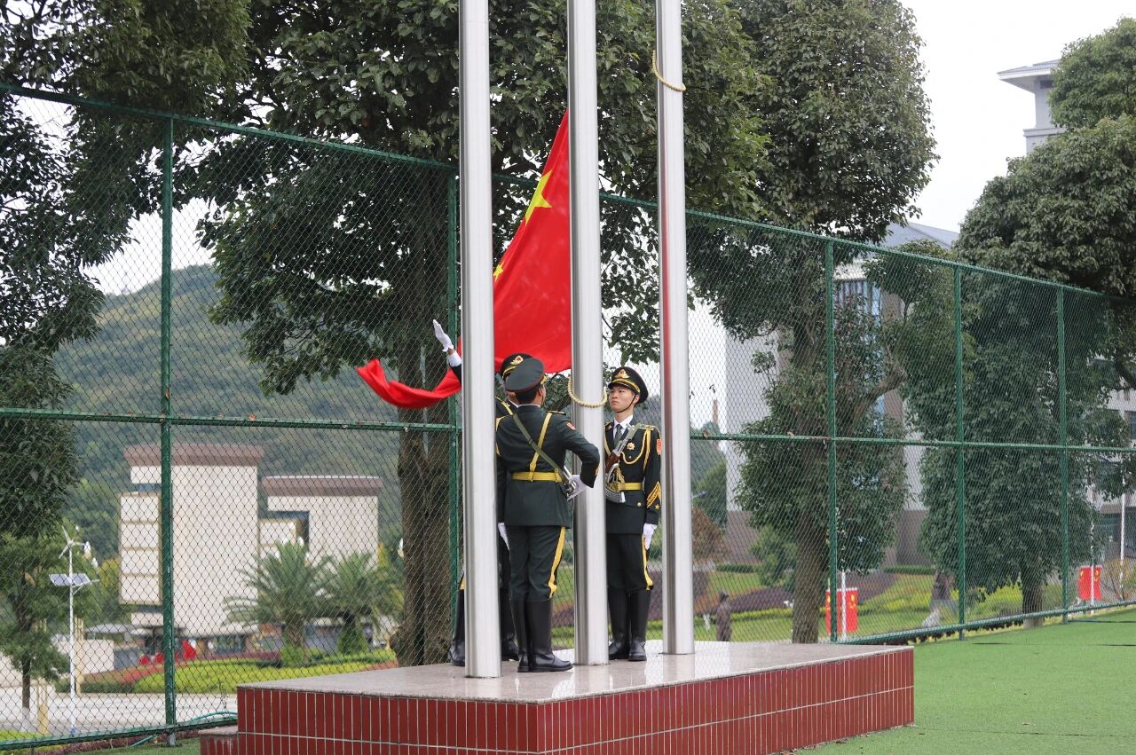 大会在庄严的国歌声中拉开序幕,全体师生朝冉冉升起的国旗行注目礼。