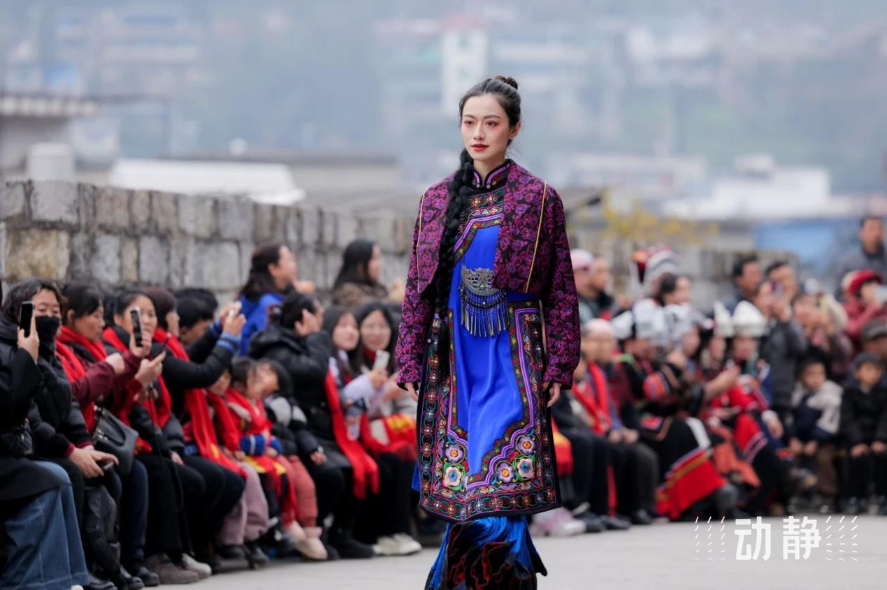 53个阿妈、16个彝族小朋友、10个专业模特,身着各式各样的彝族服饰,自信行走T台。中国时装设计师最高奖“金顶奖”获得者、中国纺织非物质文化遗产推广大使张义超的创意时尚作品与设计师阿迪阿思的传统彝族服饰、刺绣、银饰等非遗作品混搭展示尤为引人注目,让具有彝族文化符号的服饰趋于日常,走向都市生活,成为一次民族非遗服饰文化的完美时尚创新。
