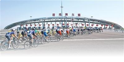 跨境赛事公路自行车男子个人赛中,选手通过港珠澳大桥闸口。新华社记者邓华摄