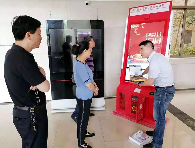 据了解,“红十字AED智慧一体机”由贵州省红十字会联合爱心企业贵州泓慧科技有限公司自主研发,集合AED应急救护、人脸识别、体温检测、志愿者参与、爱心慈善、智慧平台管理应用等系统平台,通过环境营造、物联技术应用为公众提供便捷的应急救护设备查找、应用和急救知识学习等服务。