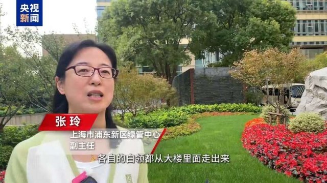 上海市浦东新区绿管中心副主任 张玲:原先这块绿地就是你是你,我是我,那么这个绿地打通了之后,各自的白领都从大楼里面走出来,进入到这个公共空间里面来,那么增加了大家的一个交流。