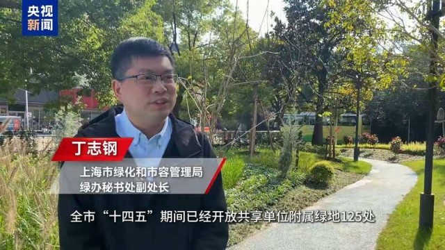 上海市绿化和市容管理局绿办秘书处副处长 丁志钢:通过把单位的围墙打开拆除或退借等方式,让附属绿地对社会开放共享,到今年10月底,全市“十四五”期间已经开放共享单位附属绿地125处,其中改造成口袋公园32个。