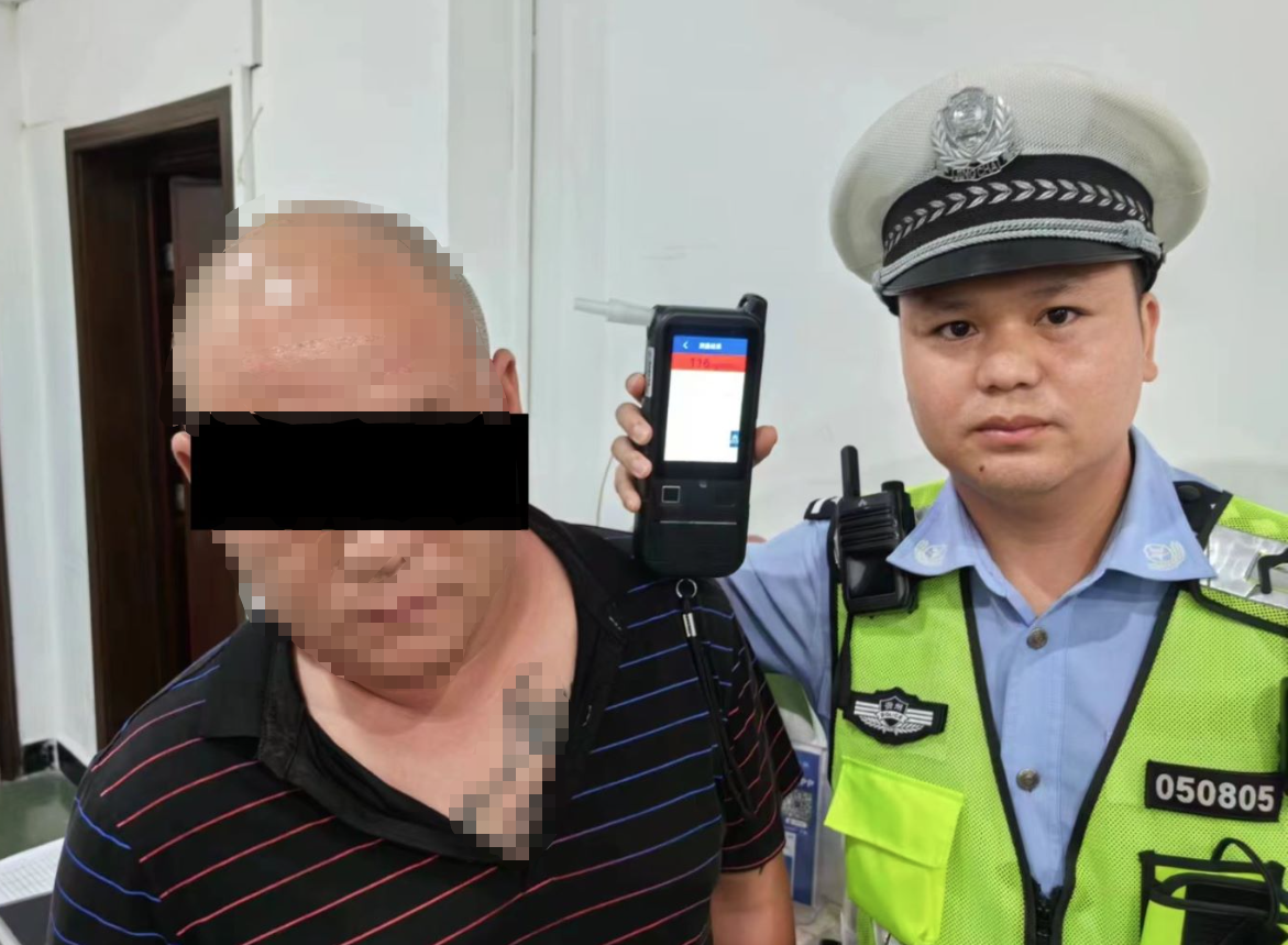 因其形迹可疑,民警当即上前要求驾驶员接受酒精检测。但郑某见民警靠近,拒不配合检查,还弃车往路旁小道逃跑,民警迅速追上将其抓获。随后,民警便将其带往大队作进一步询问与检查,起初面对民警的询问与检查,驾驶员郑某多次找借口拒绝配合处理,最终,在民警的劝说下,检测成功,经呼气式酒精检测显示酒精含量为116mg/100ml,涉嫌醉酒驾驶机动车。民警带其至医院进行抽血检验,经检验,其血液中乙醇含量为111.56mg/100ml,属于醉酒驾驶机动车。目前,案件正进一步处理中,等他的将会是法律的严惩。