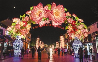 与中秋灯会同期举办的还有13项两岸文化交流、灯会嘉年华、主题宣传及文旅消费等活动。在昆山慧聚广场,一对高达7米的妈祖花灯喜迎八方来客。一旁的台湾风情文旅商业街上,蚵仔煎、大肠包小肠等台式美食店铺在红砖厝、红墙燕尾脊间依次排开。“中秋佳节是阖家团聚的日子。因工作不能回乡团圆的台胞,在昆山可以品尝到台湾的美食、看到台湾的花灯,在昆山就像是在台湾,‘此心安处是吾乡’。”昆山市台湾同胞投资企业协会会长孙德聪说。