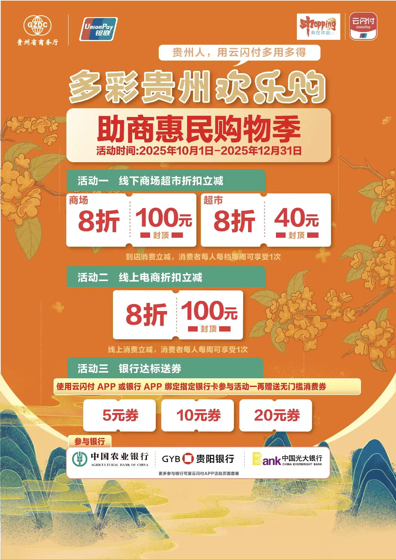 多彩贵州欢乐购丨最高立减100元,“多彩贵州欢乐购 助商惠民购物季”即将开启