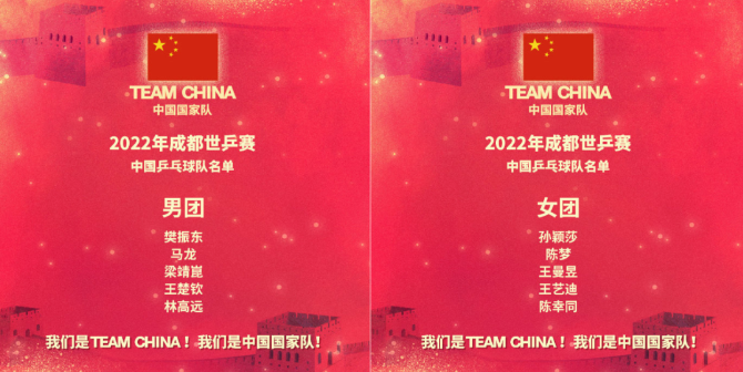 ▲中国乒协11日公布参加成都世乒赛的中国队参赛名单,樊振东、孙颖莎分别领衔男、女团体队。