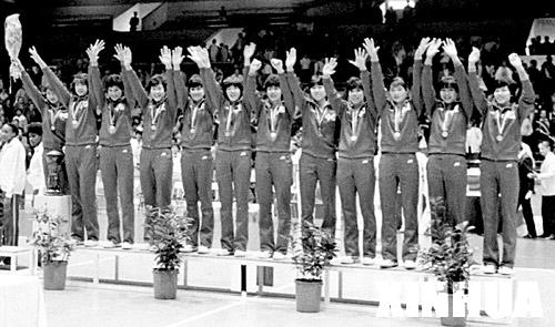 ▲1986年9月13日,中国女子排球队在捷克斯洛伐克首都布拉格举行的第10届世界女子排球锦标赛上,以3:1战胜古巴队,从而成为第一支在世界女子排球大赛中获得五连冠的球队。