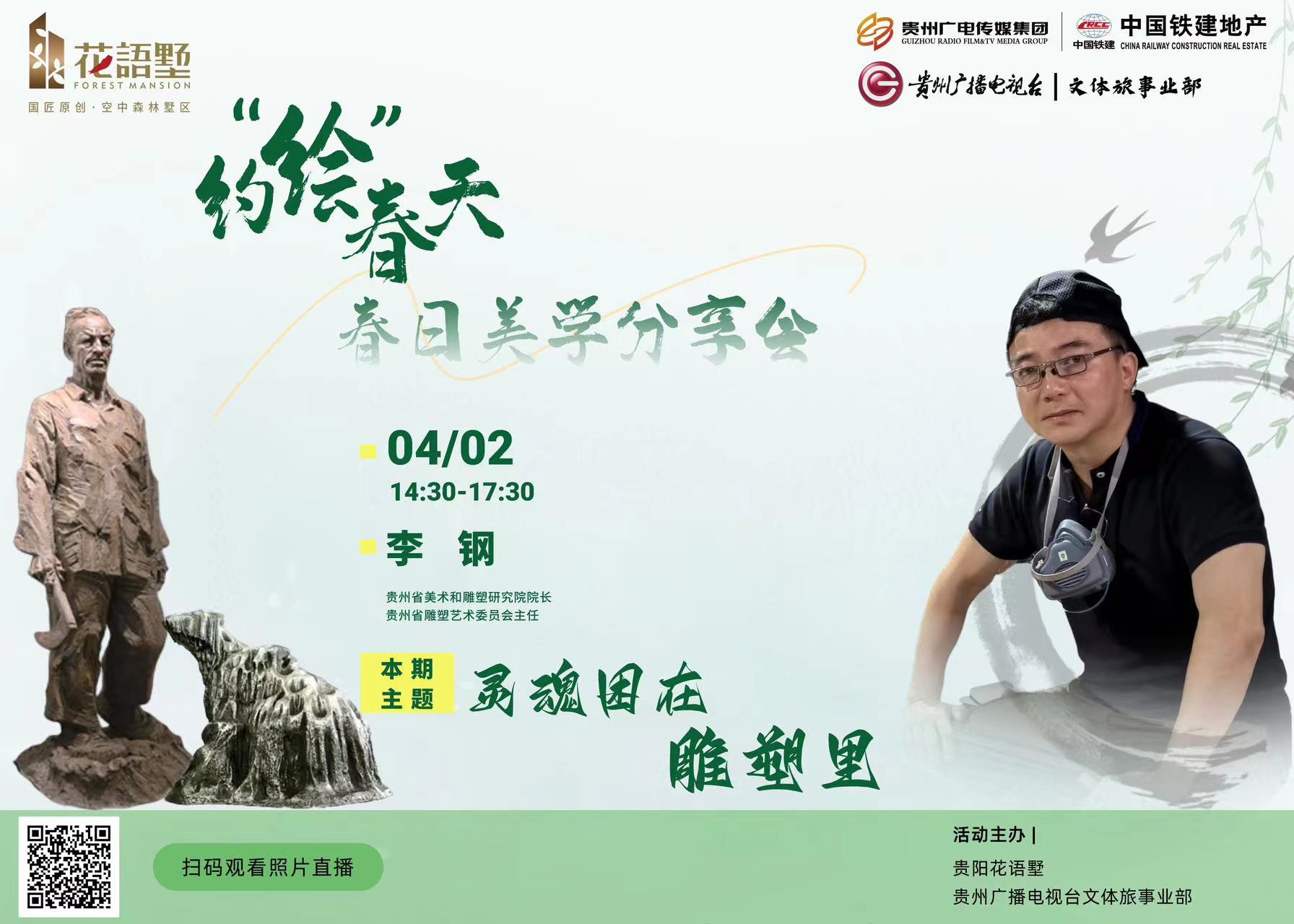 4月2日《约‘绘’春天》春日美学分享会将邀请贵州省美术和雕塑研究院院长、贵州省雕塑艺术委员会主任李钢进行《灵魂困在雕塑里》主题分享,邀请您相约花语墅,共同约“绘”春天。