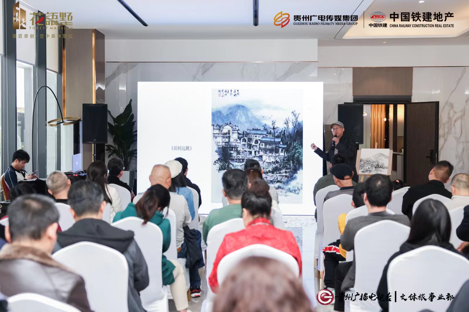 贵州省美术和雕塑研究院专职画家、贵州省美协中国画艺委会副主任张锦波,在活动现场进行了《黔山春意》主题分享。