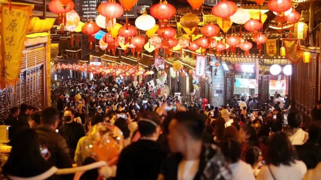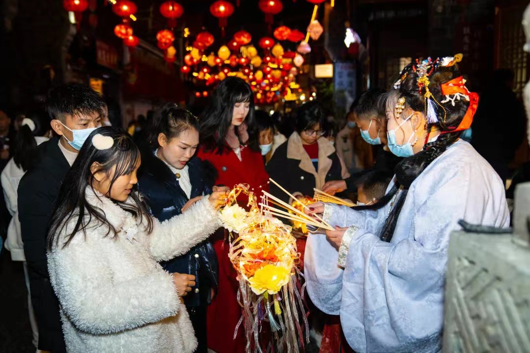 元宵夜,月圆梦圆人团圆。在中南门历史文化旅游区内,给区域华灯璀璨,人头攒动,热闹非凡,大家赏花灯、看舞龙、观美景、猜灯谜等等,满是人家烟火气!