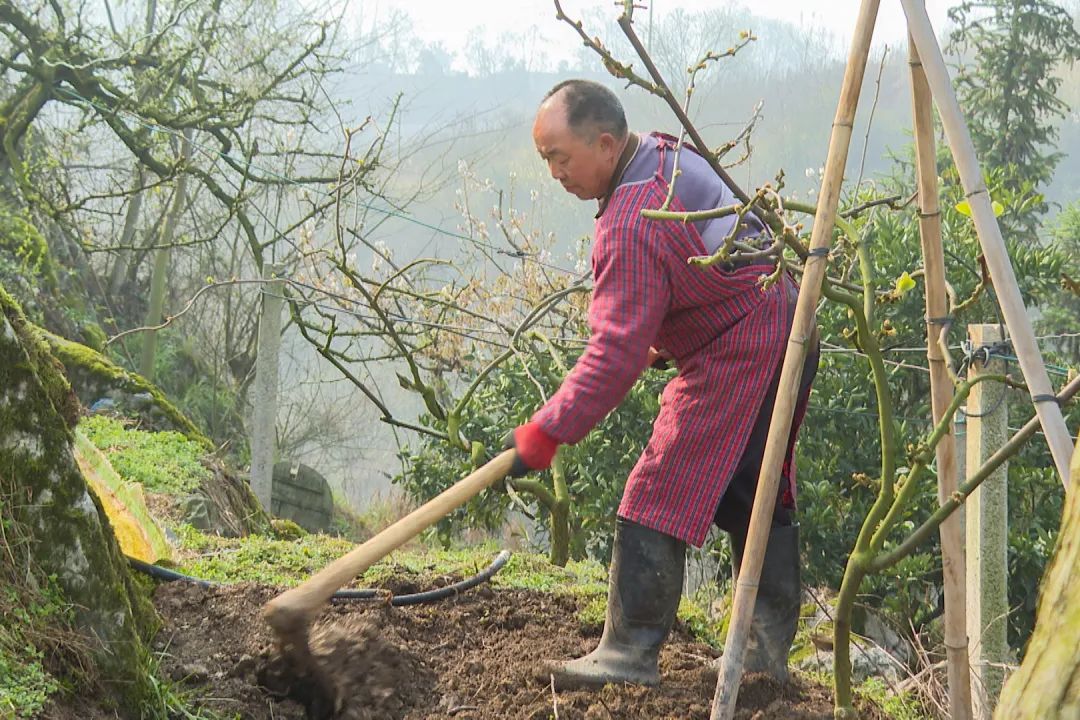 福泉市金山街道双谷村果农杨远祥说:“为了让果树长得更好,给它施点肥,我们年纪大了,也出不了门打工,自己种了一点果树,挺自由的。这几年的果树收益还是可以的,收成好,去年就有三四万的收入。”