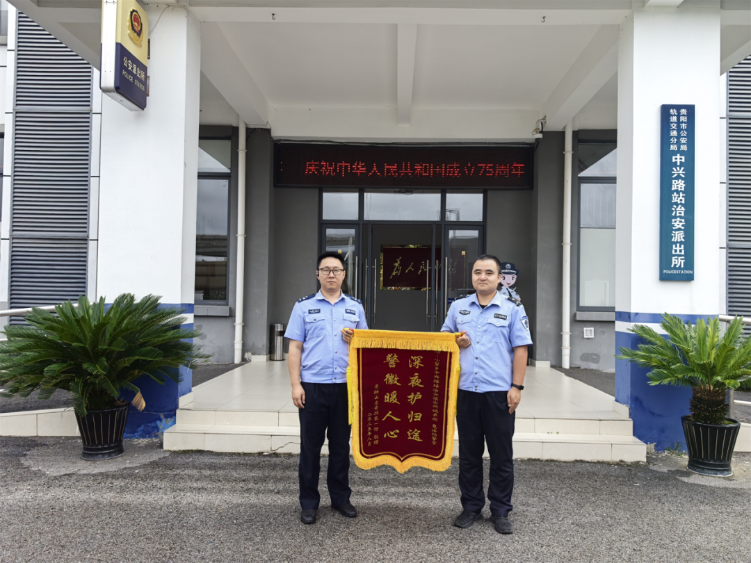公交轨道分局中兴路站治安派出所收到了一份特殊的快递——一面从山东寄来的锦旗,上面写着“深夜护归途,警徽暖人心”。原来这是三周前受到分局警务人员帮助的游客卢女士特意定制的锦旗,感谢2025年8月1日深夜,分局警务人员对她们三人的暖心相助。