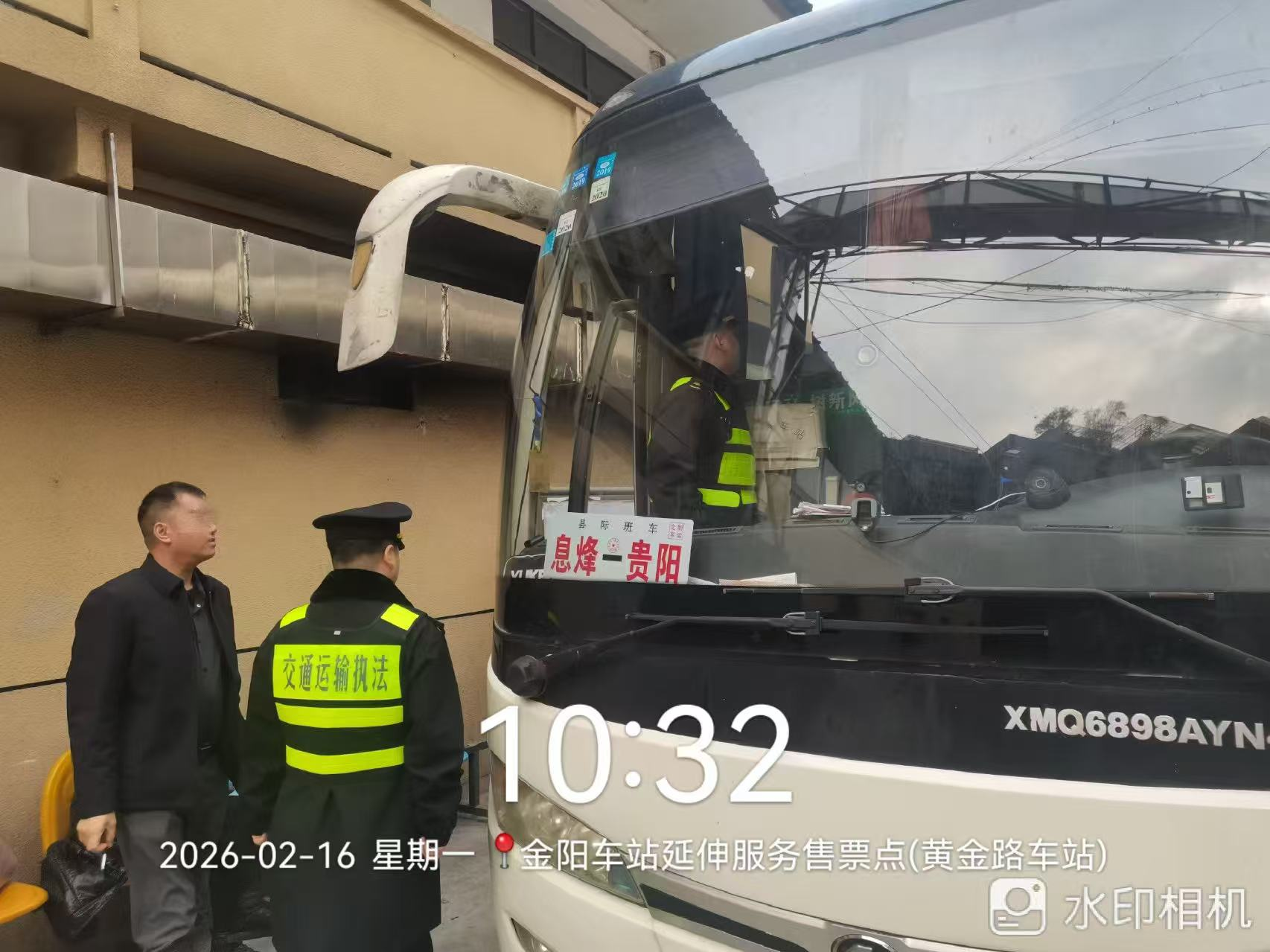 2026年农历新年期间,贵阳市交通运输综合行政执法支队云岩区大队执法人员坚守岗位、履职尽责,坚持以“平安春运、便捷春运、温馨春运”为目标,在辖区重点区域开展常态化执法巡查的同时深入辖区重点运输企业开展春节期间企业值班情况及动态监控落实情况检查,以务实举措护航广大群众平安、便捷、温馨出行。