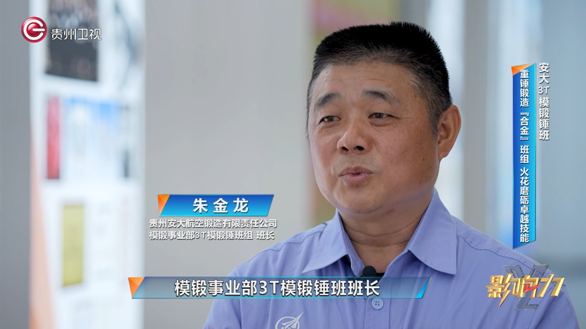贵州安大航空锻造有限责任公司模锻事业部3T模锻锤班班长 朱金龙:“我是贵州安大航空锻造有限责任公司模锻事业部3T模锻锤班班长,我从86年进厂就一直在(模锻锤)设备上工作,从一个普通的员工工作到了国家技师,然后又到了国家高级技师。我们3T模锻锤班主要是承担模锻事业部和公司的小模锻件生产。”