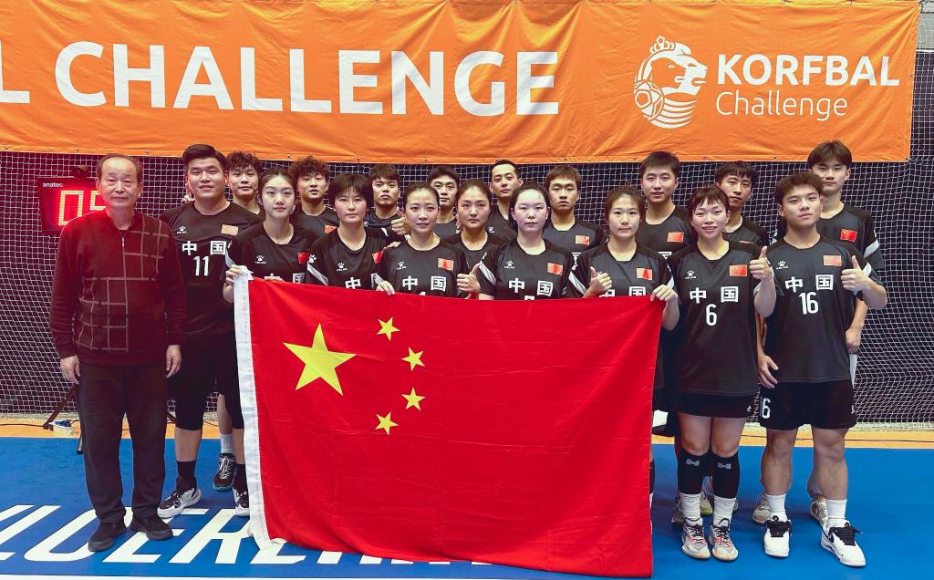 2023年12月27日,中国荷球队在荷兰鹿特丹举行的国际荷球“挑战杯”赛赛场合影留念。