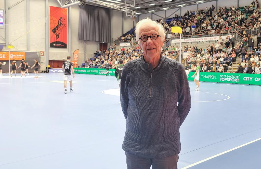 2023年12月30日,在荷兰鹿特丹举行的国际荷球“挑战杯”赛赛场,原荷兰国家荷球队主教练、中国队终身荣誉教练本·克拉姆接受新华社记者专访。