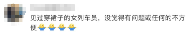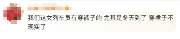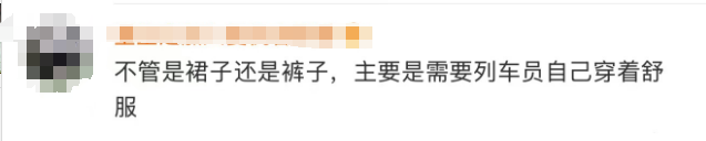 近日,有网友在社交平台上发文称,女性列车乘务员服装该换了,并在中国铁路公众号上提出建议,称在车上看到列车乘务员弯腰帮旅客处理座椅问题,裙子开叉高,长度很短,已经在走光的边缘,且乘务员经常需要弯腰之类的劳动,裙子不方便工作,建议改成裤子。