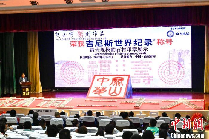 泰安人挑战“最大规模的石材印章展示”吉尼斯世界纪录成功