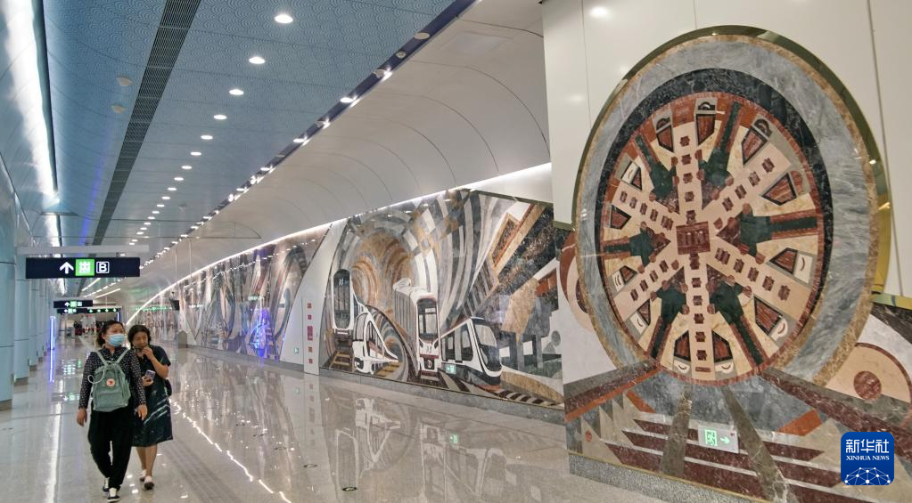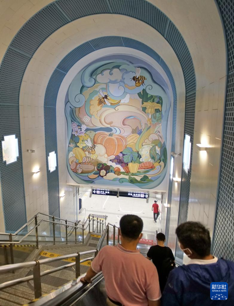 北京地铁19号线牛街站内的绘画和灯光艺术(9月9日摄)。新华社记者李欣摄