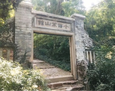 一个夏日,我有幸走进四面环水的中犊山,野芳发而幽香,佳木秀而繁阴,虬枝蟠曲,根负土石,涉目成赏,处处充满着原生态之趣。循着环山路向西前行数百米,抬头望去,只见“小蓬莱山馆”门额铁画银钩,尽显神韵,为“蠡湖散人”所书。门头中西合璧,两边刻有西番草花图案,纹饰繁复,做工精致,线条流畅,造型风格透出静谧与华美。而那一堵围墙为老式城砖所砌,石灰填缝,表面平整,结构紧密,别具一格。壁上藤蔓缠绕,随风飘拂,翠色扑人,深得屏风之妙。