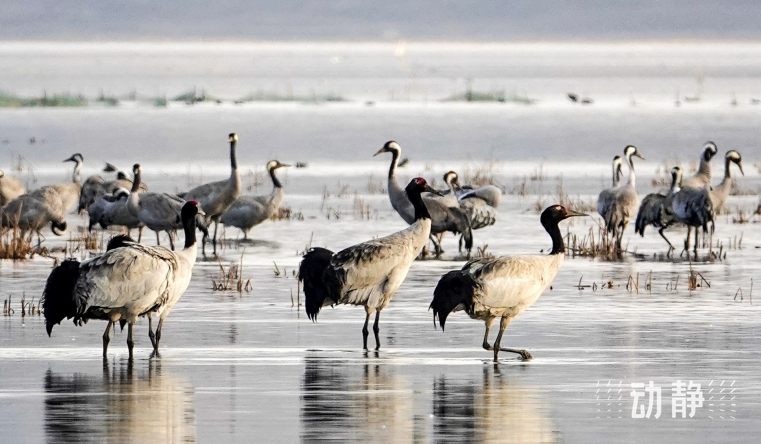 黑颈鹤是我国一级保护动物,每年秋季,黑颈鹤南迁至中国西藏南部、贵州、云南等地躲避严寒,来年春天重返甘肃、青海等繁殖地,是世界上唯一生长、繁殖在高原的鹤类。