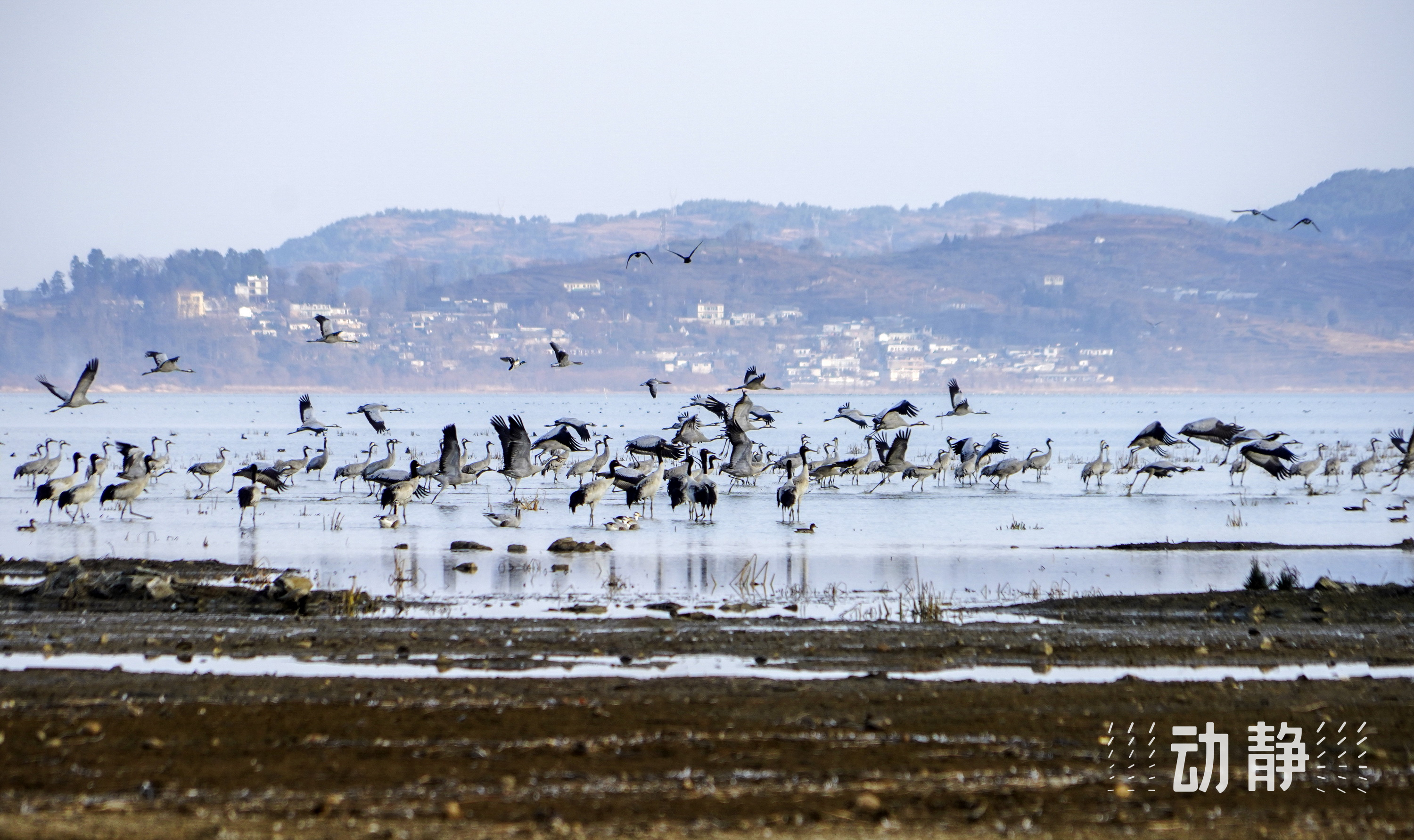 随着草海生态环境和保护措施的不断完善,黑颈鹤在这里得到了休养生息,成为了这种高原精灵越冬的天堂。据了解,今年到草海越冬的黑颈鹤达1500多只。