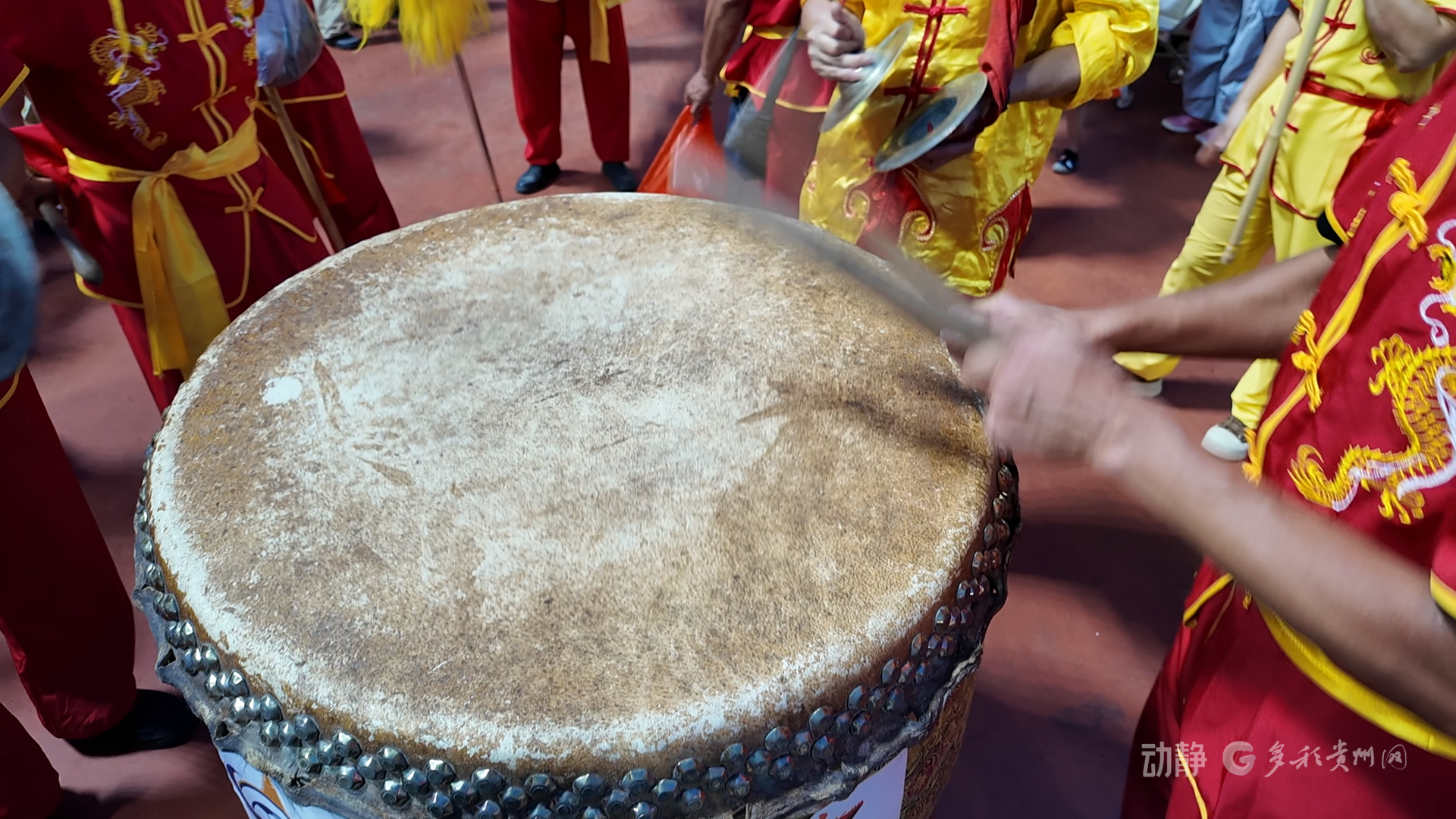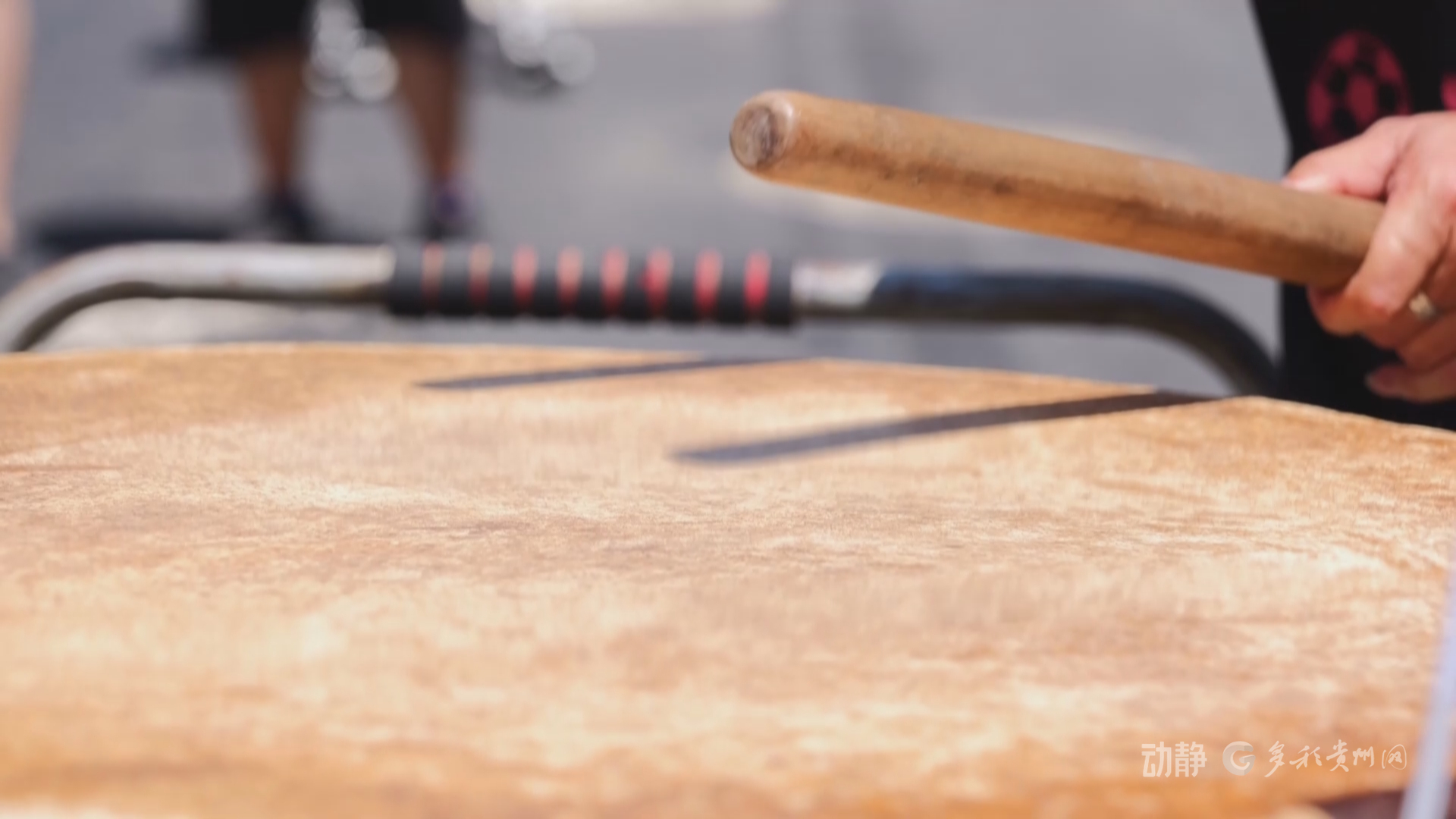 其实,这面鼓险些被吞没在洪水中,却被鼓手两家人接力抢救,最终重响“村超”赛场。