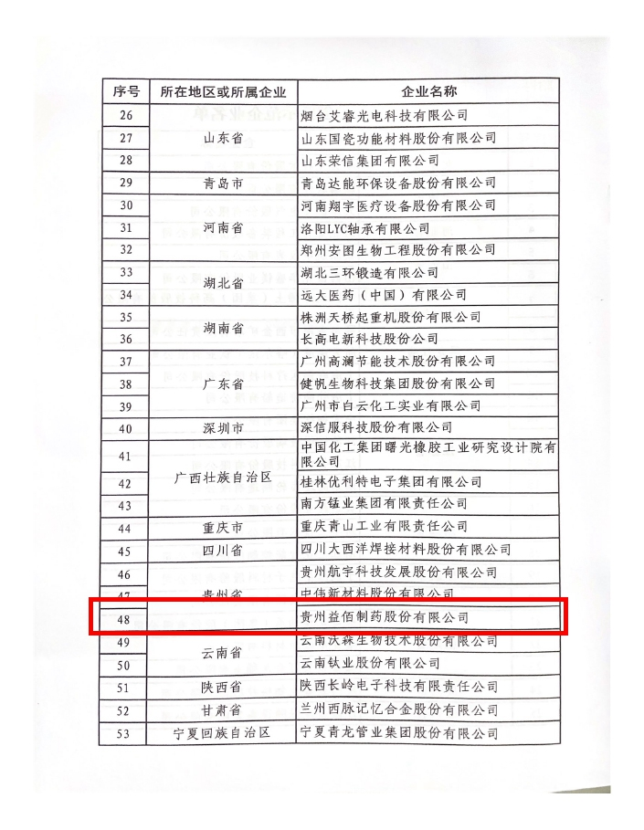 近日,工业和信息化部公示2022年国家技术创新示范企业名单,贵州益佰制药股份有限公司成功入选。本次,贵州共有3家企业获批国家技术创新示范企业。其中益佰制药作为贵州医药龙头企业,也是省内唯一入选的医药企业。