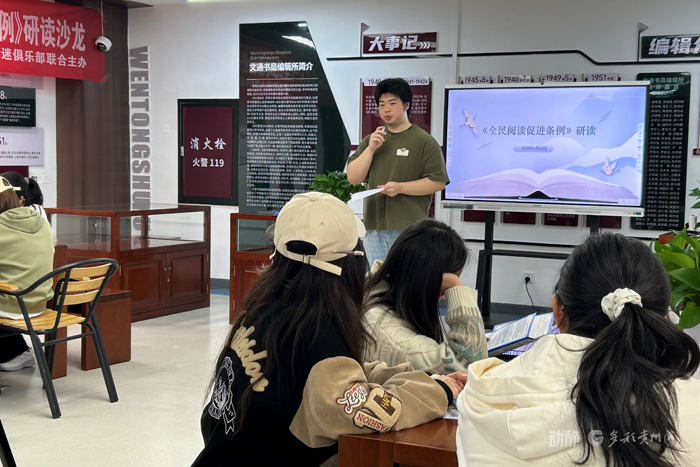 近日,贵州师范大学图书馆主办《全民阅读促进条例》研读沙龙,50余名学生齐聚一堂,共探阅读育人新路径、共话全民阅读新使命。