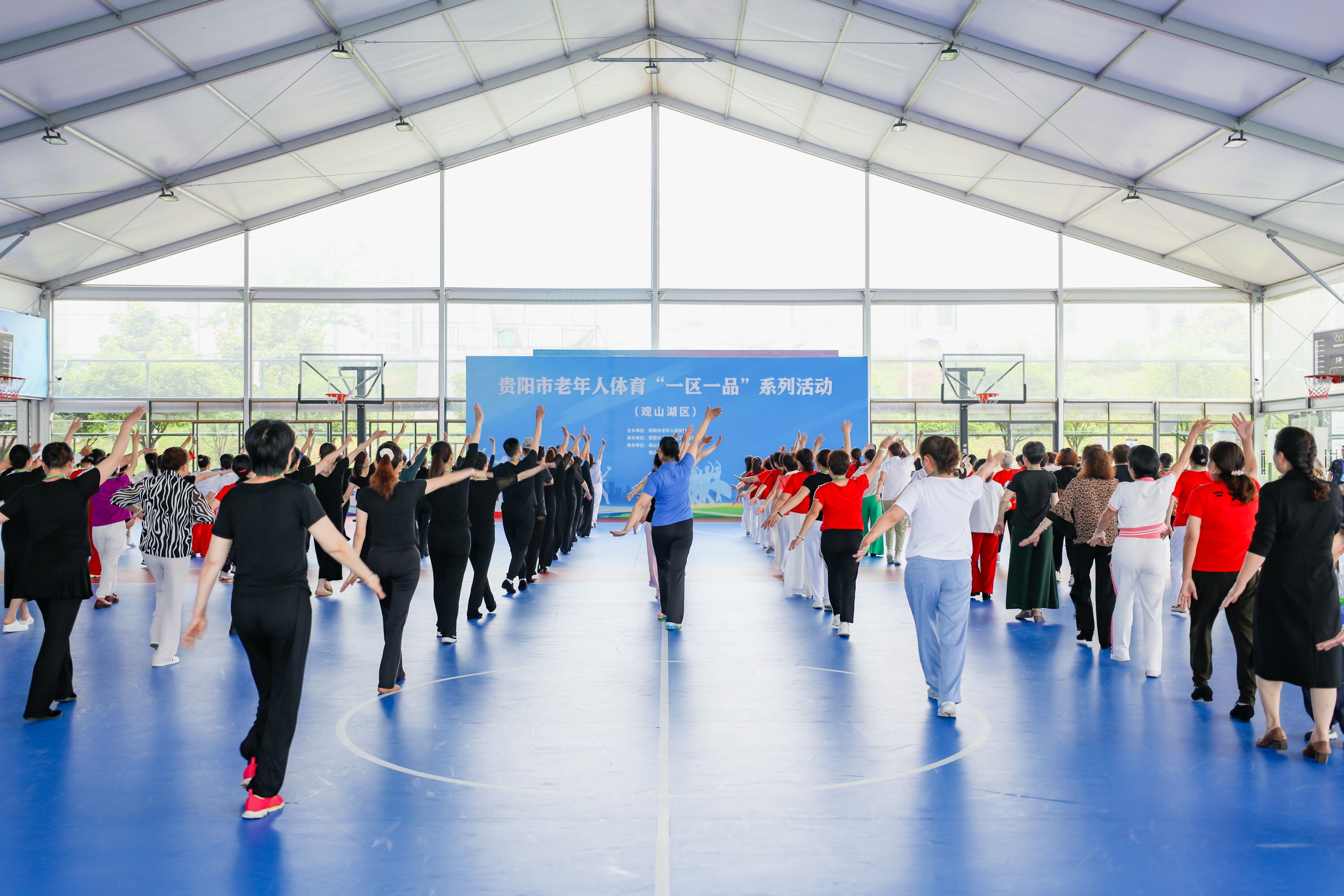 此次活动,由贵阳市老年人体育协会主办,贵阳市老年体育工作服务中心承办,观山湖区文体广电旅游局、观山湖区老年人体育协会协办,共吸引了观山湖区10个街道200余名老年广场舞爱好者参与。