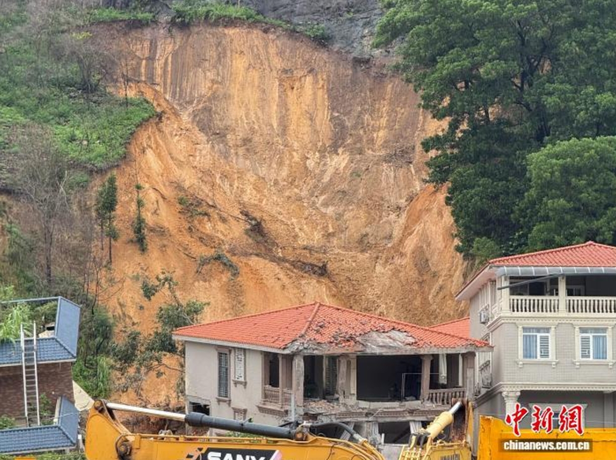 8月6日,广州连日大雨致该市大源街大源村黄庄片区山体滑坡,有房屋受损、人员被困。 中新社记者 王坚 摄