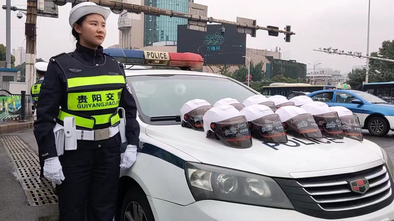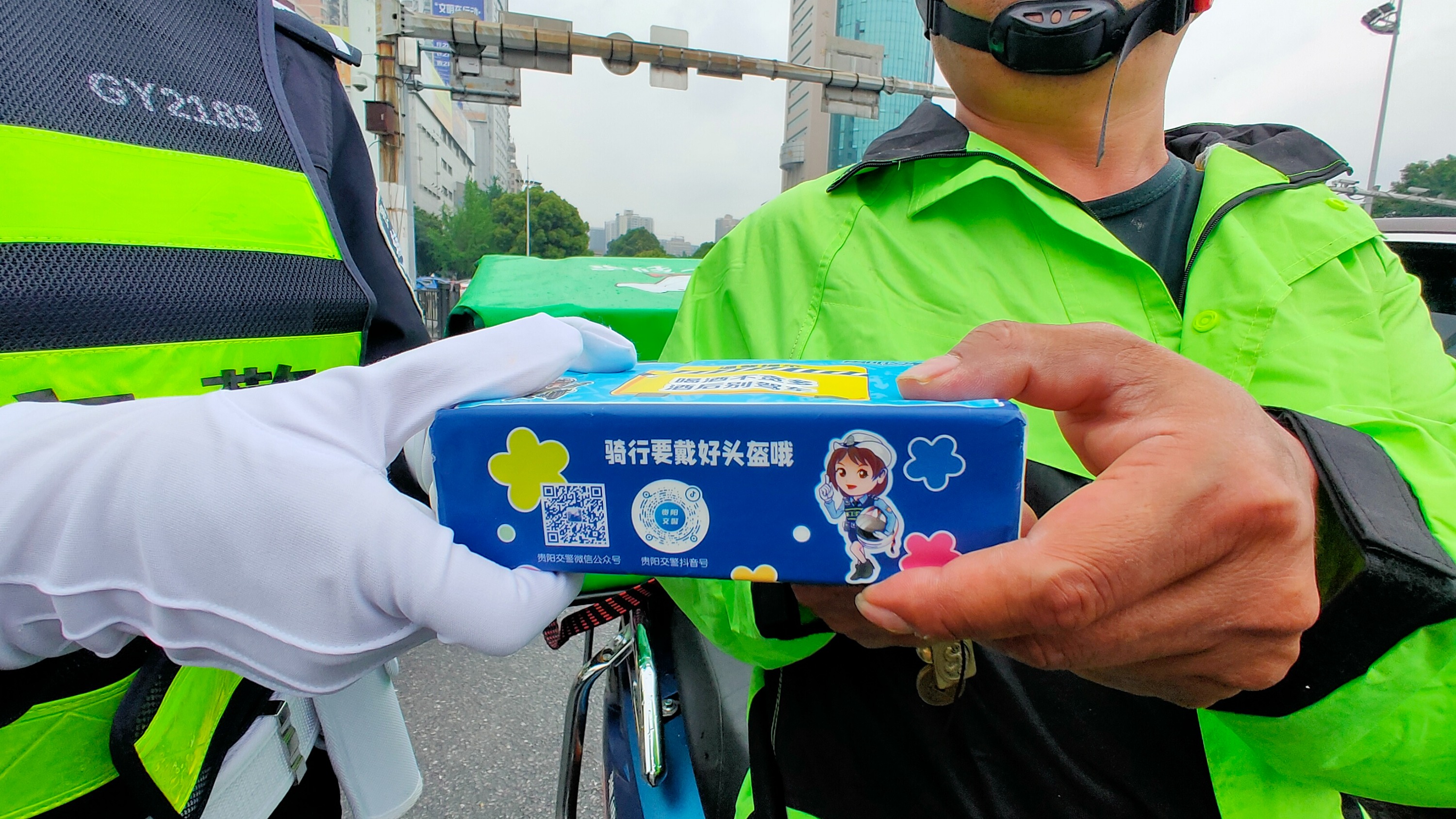 南明交警给外卖骑手送头盔,安全文明从“头”抓起