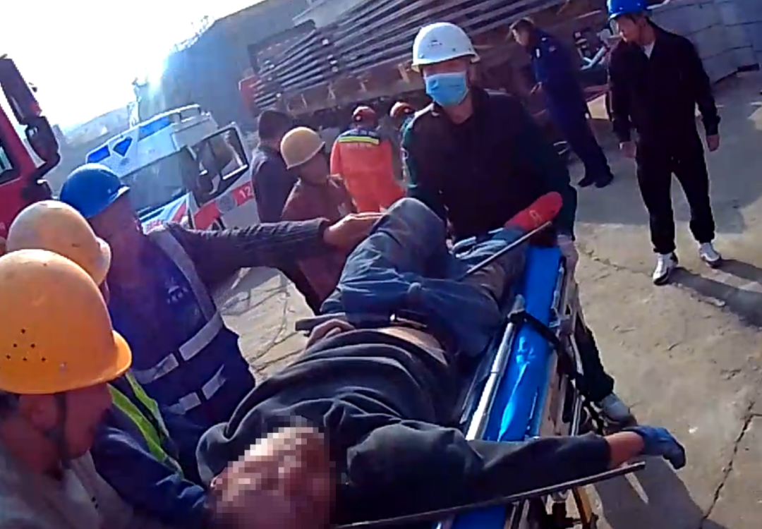 事故发生后,工地工友第一时间展开紧急处置,为避免外露钢筋对伤者造成二次伤害,他们迅速使用角磨机切断外露部分,随后将伤者小心转移至地面,并立即拨打119报警求助。