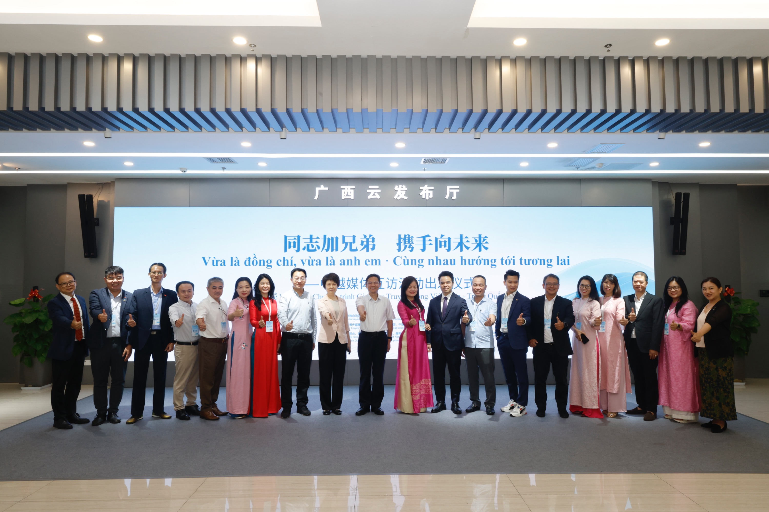 今年是中越建交75周年暨“中越人文交流年”。8月4日,“同志加兄弟 携手向未来”——中越媒体互访活动出发仪式在南宁举办。活动中,来自越南之声广播电台、越南国家电视台、越南通讯社、世界与越南报、越南兴安报与广播电视台、越南快讯、越南网报、越南广宁省传媒中心、越南西贡解放日报等9家越南主流媒体的14名记者与中国媒体同行,紧扣“陆海联通、产业协作、文明互鉴、媒体共创”的采访主题,将在为期8天的活动里,走进广西、贵州、四川三省、区,探访中国西部地区高水平对外开放的建设成果,感受中国式现代化的生动实践,探索中越合作更多互利共赢的可能。