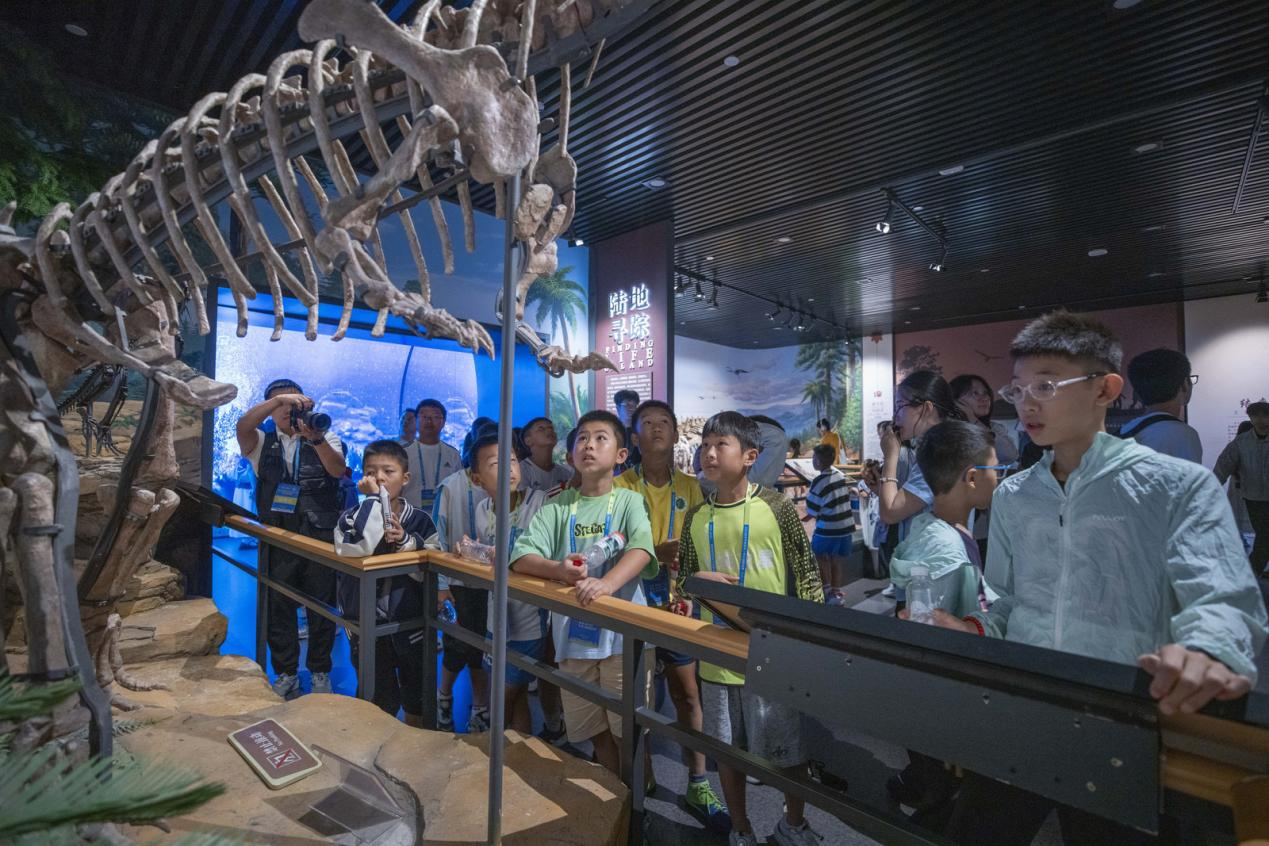 本次文化游学之旅每日聚焦一个核心主题,带领青少年在绿茵场外,用脚步丈量贵州魅力。游学首站,小球员们走进贵州省博物馆。战国青铜器“竞渡纹”所描绘的古老竞渡场景,让小球员们惊叹,一场跨越两千余年的体育“对话”,传承着竞技精神。贵州省地质博物馆丰富的古生物化石收藏也令少年们惊喜。来自广州大山小学的小球员在发现镇馆之宝关岭鱼龙化石及其它454件珍贵化石后,兴奋地表示:“贵州真是到处都藏着大自然的奇观!”
