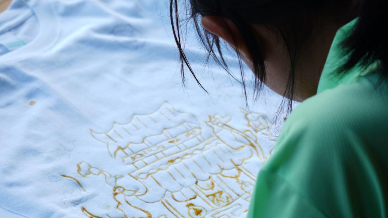 在手上记忆博物馆,游学团沉浸式体验贵州非物质文化遗产。在非物质文化遗产传承人的指导下,小球员们将古老的民族纹样与现代足球元素巧妙结合,制作出独一无二的“文化足球衫”。
