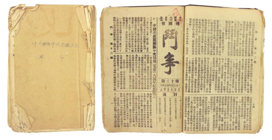 《斗争》(3—18期合订本)是江西瑞金中央革命根据地纪念馆馆藏国家一级文物,为中共苏区中央局(后为中共中央局)机关刊物,受中央党报委员会领导,1933年2月4日在瑞金出版第1期。