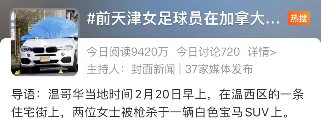 前我国女足球员在加拿大遭枪击身亡!当地华人:警方称是有目标的袭击