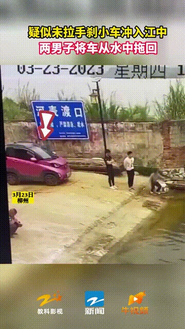 近日,柳州。下午2点,在柳州市鱼峰区里雍镇河表新村渡口码头上,一辆停着的小车疑似未拉手刹,突然径直冲进柳江,还把岸上的一名男子撞进了水中。幸好在旁边人员的帮助下,男子很快爬上了岸,但小车却在河里越漂越远。这时候,反应过来的两人赶紧跳下河,没过多久,居然把漂在河水里的小车又推向了岸边。