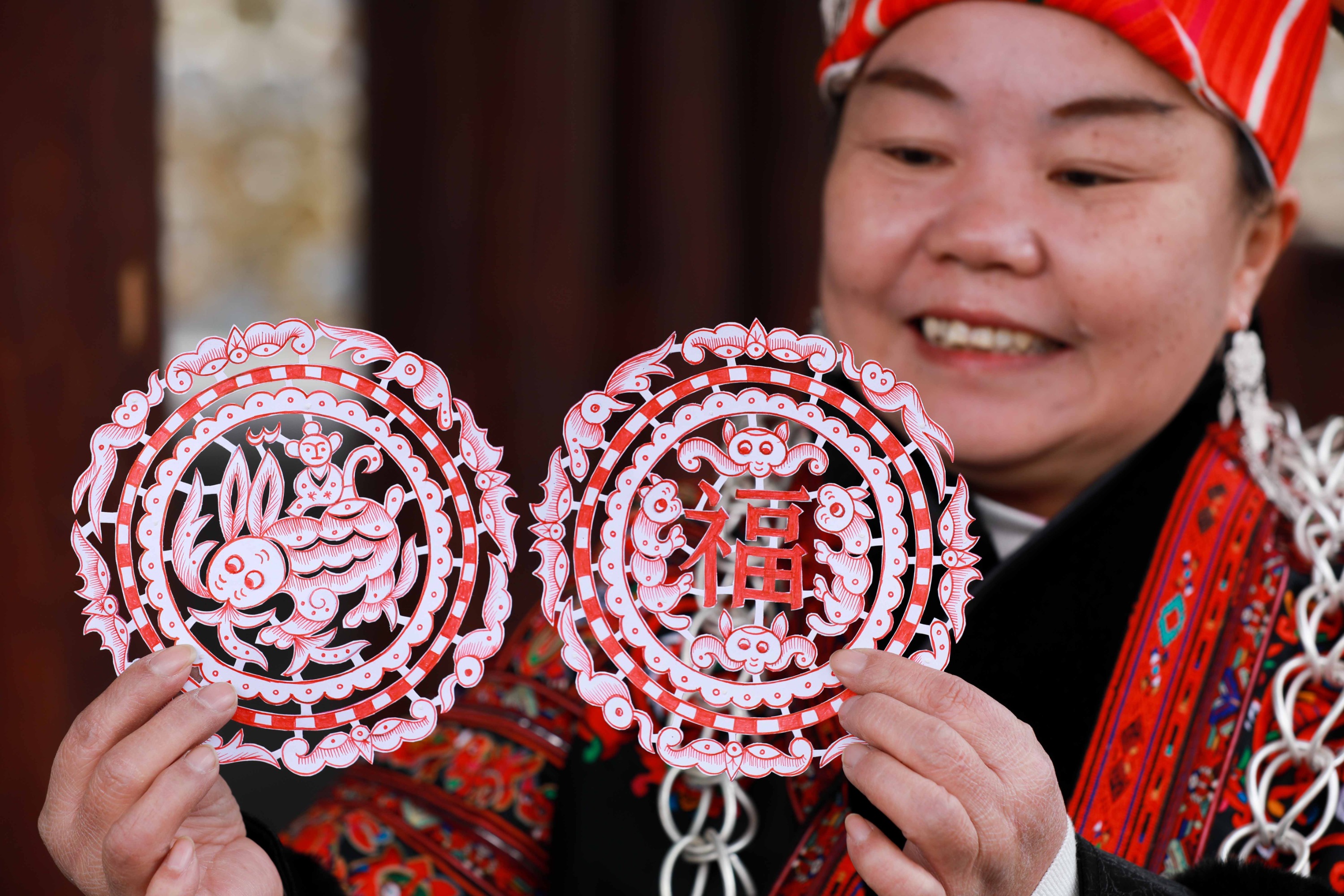 新春佳节,贵州省黔东南苗族侗族自治州剑河县国家级非遗传承人、苗族剪纸工艺大师姜文英,通过创作兔年剪纸作品,传承剪纸非遗,发扬传统文化魅力,庆祝新年的到来。