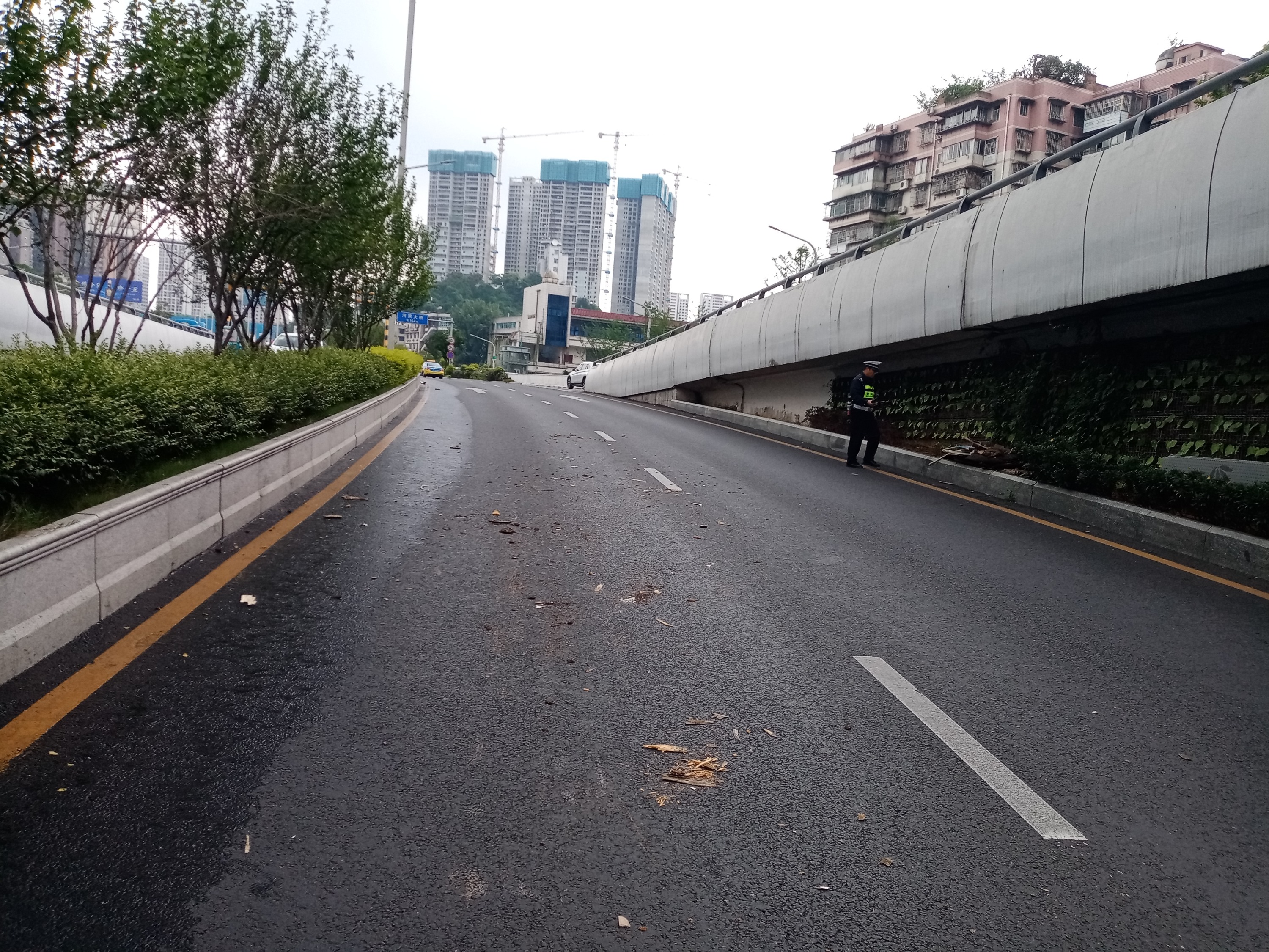近日,南明交警二中队开展路面巡逻工作时,发现人民大道道路中间有散落物,南明交警及时清理消除交通安全隐患。