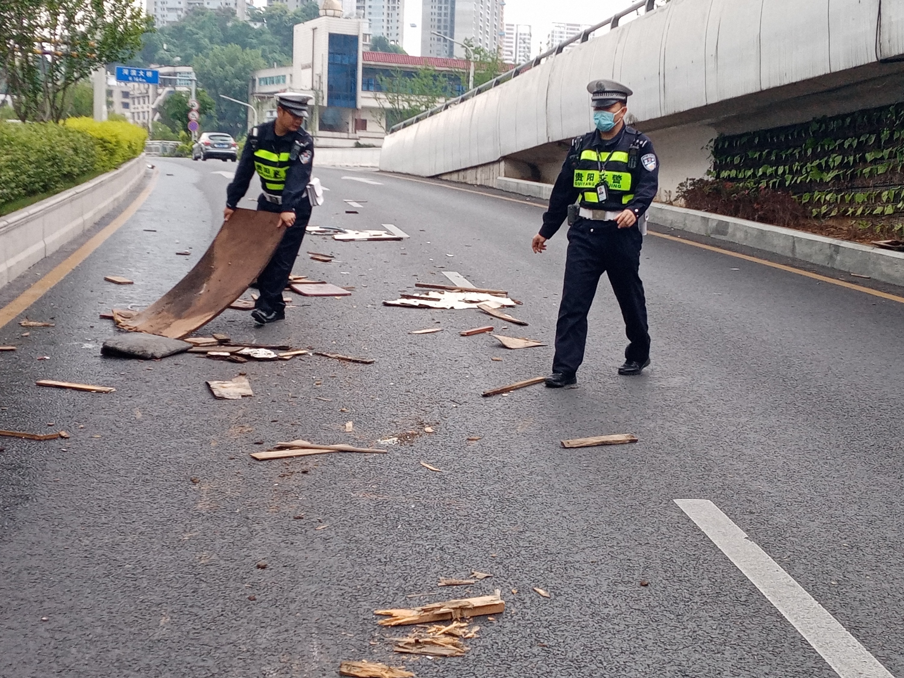 见状,执勤交警在做好安全防护的前提下,将木料垃圾清理至旁边不妨碍交通的位置,避免了因散落物导致交通事故发生,下一步南明交警将调取路面监控,针对散落垃圾的车辆按照法律规定进行处罚。