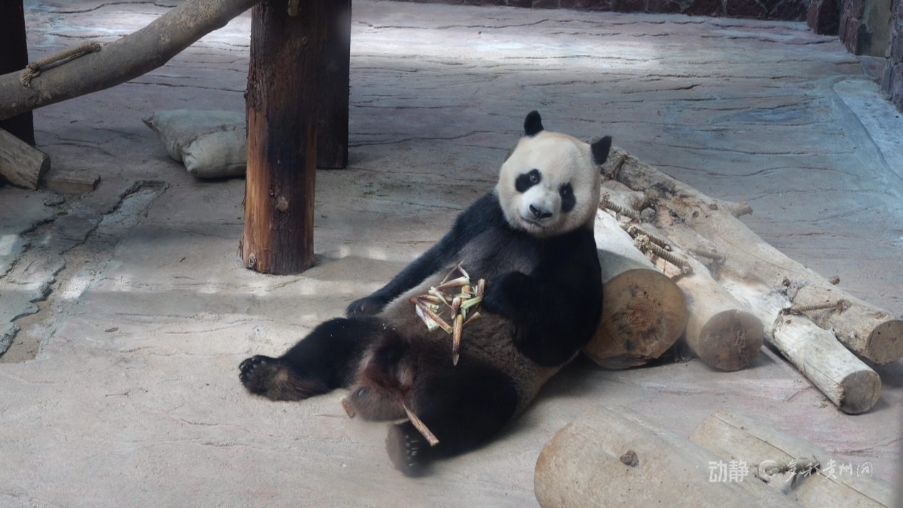 重庆小朋友沐沐更是看得挪不开眼:“熊猫一开始躺着吃竹子,后来又爬到架子上睡觉,太萌啦!”