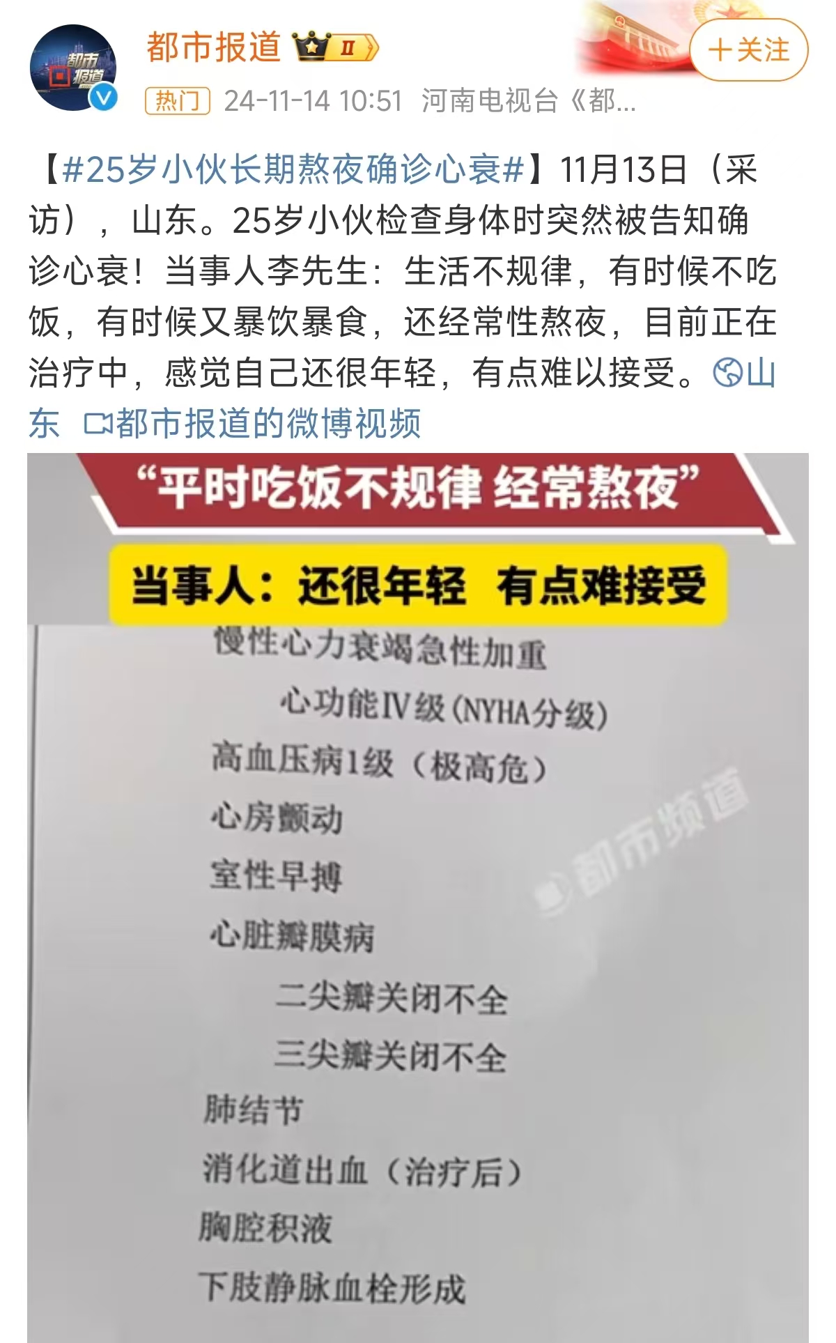 近日,山东心血管内分泌科收治了一位年仅25岁的心衰患者。据了解,李先生平常生活作息、饮食都极其不规律,还经常性熬夜,年纪轻轻就患有高血压性心力衰竭和心功能不全,心功能已达到4级,目前正在接受治疗。李先生称:“自己经常感觉呼吸困难,以为只是压力太大,过段时间就好了,确诊以后,自己都难以接受。”殊不知他的故事并非孤例,而是心衰年轻化趋势的缩影。