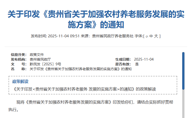近日,省民政厅等22部门印发了《贵州省关于加强农村养老服务发展的实施方案》(以下简称《方案》),加快推进贵州省农村养老服务发展,不断补齐农村养老服务短板,满足农村老年人养老服务需求,着力提高农村养老服务质量水平。